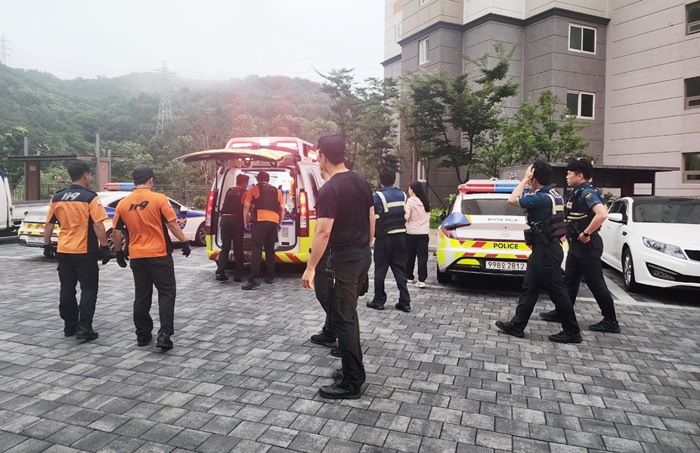 [½Ã»çÄÚ¸®¾ÆÀú³Î=Á¤Á¾¹Î ¼±ÀÓ±âÀÚ] °ÅÁ¦½Ã ³ëÀÎÅëÇÕÁö¿ø¼¾ÅÍ¿Í °ÇÃà°ú, °æÂû, 119 ±¸±Þ´ë, ¾ÆÆÄÆ®°ü¸®¼Ò°¡ È¥¿¬ÀÏü°¡ µÅ À§±â¿¡ óÇÑ ¾î¸£½ÅÀ» ±¸ÇØ ÁÖÀ§¸¦ ÈÆÈÆÇÏ°Ô Çϰí ÀÖ´Ù.