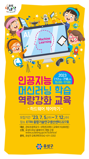 [½Ã»çÄÚ¸®¾ÆÀú³Î=À̼±¿ì±âÀÚ] ´ëÀü À¯¼º±¸(±¸Ã»Àå Á¤¿ë·¡)´Â ÀÌ´Þ 17ÀϺÎÅÍ 18ÀϱîÁö ÀÌÆ²°£ ETRI À¶ÇÕ±â¼ú¿¬±¸»ý»ê¼¾ÅÍ¿¡¼ ÃʵîÇлýÀ» ´ë»óÀ¸·Î 'ÀΰøÁö´É ¸Ó½Å·¯´× ÇнÀ ¿ª·®°È ±³À°'À» ÃßÁøÇÑ´Ù°í ¹àÇû´Ù.