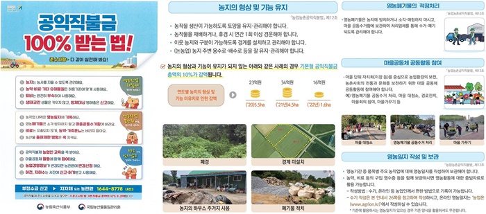 ±âº»Çü °øÀÍÁ÷ºÒÁ¦´Â ³ó¾÷·³óÃÌÀÇ °øÀͱâ´ÉÀ» ÁõÁøÇÏ°í ³ó¾÷¿¡ Á¾»çÇÏ´Â ³ó¾÷ÀÎÀÇ ¼Òµæ ¾ÈÁ¤À» µ½±â À§ÇØ Áö¿øµÇ´Â Á¦µµÀ̸ç, °øÀͱâ´ÉÀÌ È®´ëµÊ¿¡ µû¶ó Á÷ºÒ±ÝÀ» ¼ö·ÉÇÏ´Â ³ó¾÷Àο¡°Ô´Â 17°¡Áö Áؼö»çÇ× ½ÇõÀÌ ¿ä±¸µÈ´Ù.