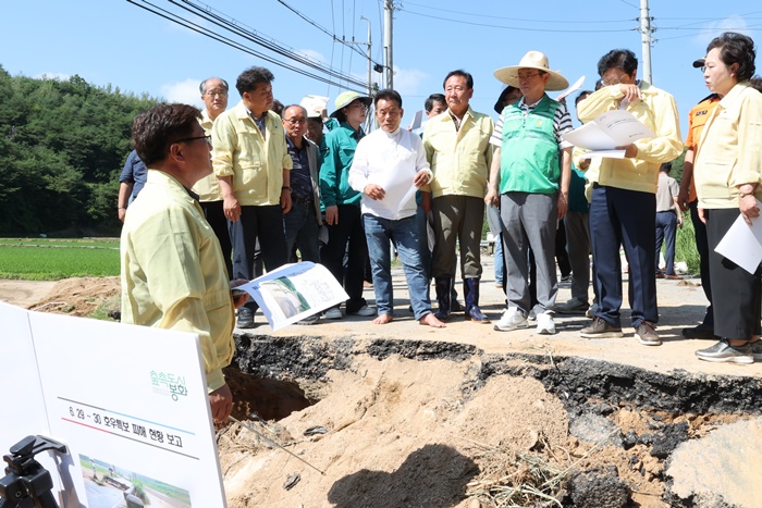 [½Ã»çÄÚ¸®¾ÆÀú³Î=±è¿¬ÇÐ ±âÀÚ] °æºÏµµÀÇȸ ¹èÇÑö ÀÇÀåÀº 1ÀÏ ¿ÀÈÄ ÁýÁßÈ£¿ì·Î ÆÄ¼ÕµÈ ÁÖÅðú µµ·Î µî ÇÇÇØÇöÀåÀ» ±ä±Þ ¹æ¹®ÇØ ÀÀ±Þ º¹±¸ ÃßÁøÇöȲÀ» Á¡°ËÇϰí ÇÇÇØÁֹεéÀ» À§·Î Çß´Ù.