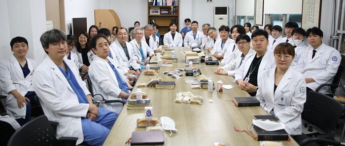 | °í½Å´ëº´¿øÀº ¸ù°ñ ±¹¸³¾Ï¼¾ÅÍ ¿Ü°úÀÇ 2¸íÀÇ ¿¬¼ö¸¦ ¸¶ÃÆ´Ù. »çÁøÀº ¿¬¼öÁöµµ±³¼ö¿Í ÇÔ²²(¸Ç¿Þ ¼°æ¿ø,¹®Çüȯ±³¼ö, ¿¬¼öÀÇ»ç2¸í, ¿À°æ½Âº´¿øÀå) ±â³äÃÔ¿µÀ» Çϰí ÀÖ´Ù. |