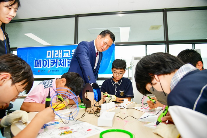 | ¹ÚÁ¾¿ì °ÅÁ¦½ÃÀåÀÌ ¹Î¼±8±â ÃëÀÓ 1ÁÖ³âÀ» ¸Â¾Æ 2³âÂ÷ ù³¯ ¸ÞÀÌÄ¿ ¼¾Å͸¦ ã¾Æ û¼Ò³âµé°ú ÇÔ²² 3D ÆæÀ» Ȱ¿ëÇÑ ¹Ì·¡µµ½Ã ¸¸µé±â üÇèÀ» Çß´Ù. |