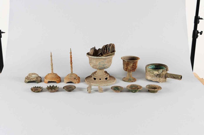 ƯÈ÷ ö¼Ü ³»ºÎ¿¡¼´Â ´Ù¾çÇÑ ÇüÅÂÀÇ °í·Á½Ã´ë ûµ¿ °ø¾ç±¸¿Í Àǽı¸µéÀÌ ´ã°Ü ÀÖ¾î ÁÖ¸ñµÈ´Ù. ö¼ÜÀº Áö¸§ ¾à 65cm, ³ôÀÌ ¾à 62cmÀÇ Å©±â·Î ¿ÜºÎ¿¡ 4°³ÀÇ ¼ÕÀâÀ̰¡ ´Þ·Á ÀÖÀ¸¸ç, ¾È¿¡´Â ÀÛÀº ±â¿Í Á¶°¢µéÀÌ ¼¯¿© ÀÖ´Â ÈëÀÌ 30cm Á¤µµ Â÷ ÀÖ¾ú°í, ±× ¾Æ·¡¿¡¼ ûµ¿ Çâ·Î, Ãдë, ±Ý°Àú µî °í·Á½Ã´ë ºÒ±³°ø¾ç±¸¿Í Àǽı¸ µîÀÌ È®ÀεƴÙ.