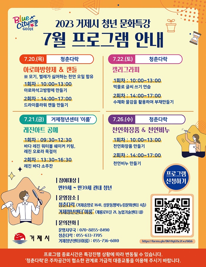 [½Ã»çÄÚ¸®¾ÆÀú³Î=Á¤Á¾¹Î ¼±ÀÓ±âÀÚ] °ÅÁ¦½Ã´Â °ÅÁ¦Ã»³â¼¾ÅÍ‘ÀÌ·ë’°ú ûÃá´Ù¶ô¿¡¼ ¿î¿µÇÏ´Â 'û³â ¹®ÈƯ° 7¿ù ÇÁ·Î±×·¥'À» ¼ºÈ²¸®¿¡ ¸¶ÃÆ´Ù°í ¹àÇû´Ù.