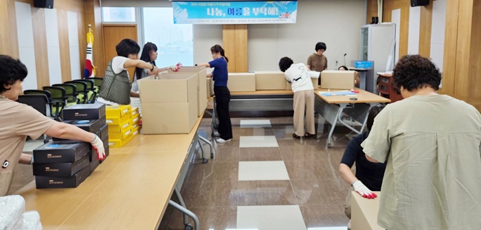 À̳¯ È«¸íÀÚ ÇÕõ±º¼ÒºñÀÚ±³À°Áß¾ÓȸÀåÀ» ºñ·ÔÇÑ È¸¿ø°ú ÀÚ¿øºÀ»ç¼¾ÅÍ Á÷¿ø 11¸íÀÌ Âü¿©ÇØ Ãë¾à°èÃþ ½Ã¿øÇÑ ¿©¸§³ª±â ŰƮ 60°³¸¦ Á¦ÀÛÇß´Ù.