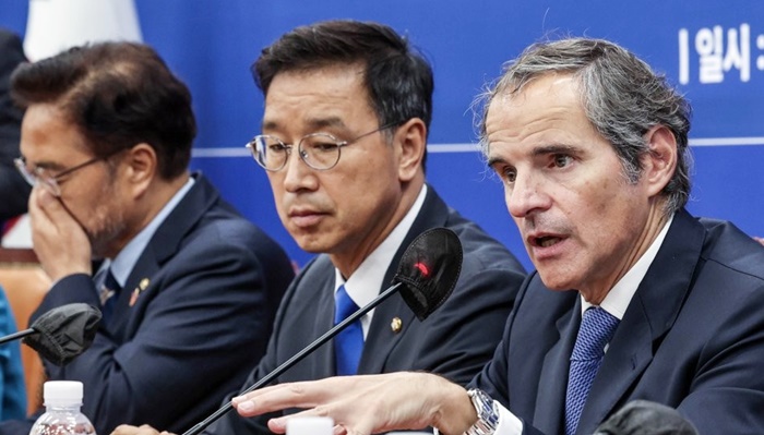 | ¶óÆÄ¿¤ ±×·Î½Ã ±¹Á¦¿øÀڷ±ⱸ(IAEA) »ç¹«ÃÑÀåÀÌ 9ÀÏ ¼¿ï ¿©Àǵµ ±¹È¸¿¡¼ ¿¸° ´õºÒ¾î¹ÎÁÖ´ç ÈÄÄí½Ã¸¶ ¿øÀü¿À¿°¼ö ÇØ¾çÅõ±âÀúÁö ´ëÃ¥À§¿øÈ¸-±¹Á¦¿øÀڷ±ⱸ ¸é´ã¿¡¼ ¹ß¾ðÇϰí ÀÖ´Ù. /°øµ¿ÃëÀç |
