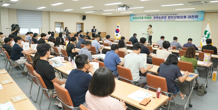 [½Ã»çÄÚ¸®¾ÆÀú³Î=±è¿¬ÇÐ ±âÀÚ] °æ»óºÏµµ³ó¾÷±â¼ú¿øÀº 10ÀÏ °æºÏ ½º¸¶Æ®ÆÊÇõ½Å¹ë¸®¿¡¼ ±â¼ú¿ø ¼Ò¼Ó 80¿© ¸íÀÇ Á÷¿øÀÌ Âü¼®ÇÑ °¡¿îµ¥ ‘¼ÒµæÀ» µÎ ¹è·Î, °æºÏ³ó¾÷Àº ÷´Ü»ê¾÷À¸·Î ´ëÀüȯ’À̶ó´Â ÁÖÁ¦·Î '½º¸¶Æ®³ó¾÷¿¬±¸È¸ ¼³¸³ ¹ß´ë½Ä'À» °¡Á³´Ù.