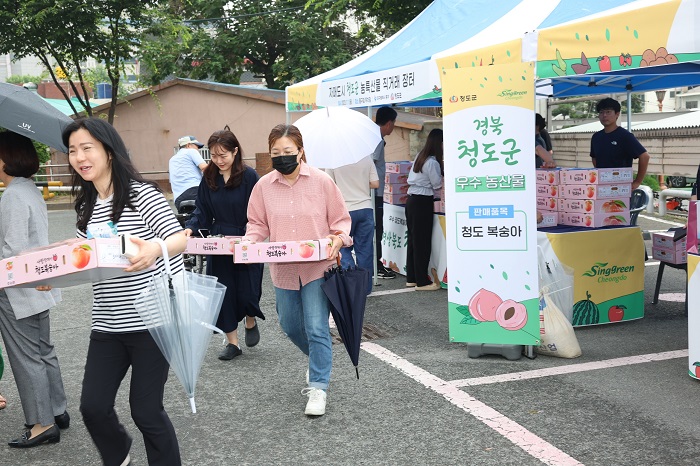 À̳¯ Çà»çÀå¿¡¼´Â ûµµ±ºÀÇ ´ëÇ¥ÀûÀÎ ¿©¸§ ³óƯ»ê¹°·Î ¸À°ú ÇâÀÌ Àü±¹ ÃÖ°í¸¦ ÀÚ¶ûÇϴ ûµµ º¹¼þ¾Æ¸¦ Àú·ÅÇÑ °¡°ÝÀ¸·Î ÆÇ¸ÅÇÏ¿© ´ë±¸ ½Ã¹Î¿¡°Ô Àα⸦ ¾ò¾úÀ¸¸ç, ¸À ÁÁÀº ûµµ º¹¼þ¾Æ¸¦ µµ½Ã¹Îµé¿¡°Ô ¾Ë¸®´Â °è±â°¡ µÇ¾ú´Ù.