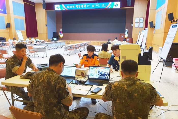 ÈÆ·Ã 1~2ÀÏÂ÷¿¡´Â ´ëÅ×·¯ ¹× ´ëħÅõ »óȲÀ» ½ÃÀÛÀ¸·Î ÅëÇÕ¹æÀ§»çŰ¡ ¼±Æ÷µÇ°í 3~4ÀÏÂ÷¿¡´Â Àü½ÃÀüȯ ¹× Àü¸éÀü ´ëºñ Àü½ÃÁ¾ÇÕ»óȲ½ÇÀ» ¿î¿ëÇØ Ãæ¹«»çź° Ãæ¹«°èȹÀ» ½Ç½ÃÇϸç, ÈÆ·Ã 5ÀÏÂ÷ÀÎ 14ÀÏ¿¡´Â »çÈİËÅä ȸÀǸ¦ ÅëÇØ ÈÆ·Ã °£ ¹ÌºñÁ¡ º¸¿Ï ¹× °³¼±»çÇ×À» µµÃâÇÑ´Ù.