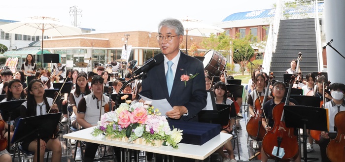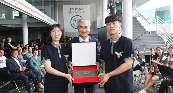 ¹ÚÁ¾ÈÆ ±³À°°¨Àº Àλ縻¿¡¼ “¿ë³²°íµîÇб³ ¹Ì·¡Çü Çõ½Å °ø°£Àº ¹Ì·¡ ±³À°À» ¼±µÎ·Î À̲ø¸ç ¹Ì·¡ »ê¾÷¿¡ ÇÊ¿äÇÑ ÀÎÀ縦 À°¼ºÇϸ®¶ó È®½ÅÇϰí, ¾ÆÀ̵éÀÇ ¹Ì·¡¸¦ À§ÇÑ ´ëÇѹα¹ ±³À° °ø°£ÀÇ À¸¶ä ¸ðµ¨·Î ¿ì¶Ò ¼±â¸¦ ±â¿øÇÑ´Ù”°í ¸»Çß´Ù.