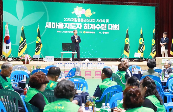[½Ã»çÄÚ¸®¾ÆÀú³Î=±è¿¬ÇÐ ±âÀÚ] ¿µ¾ç±º»õ¸¶À»È¸(ȸÀå ±èÁ¾Å¹)´Â 11ÀÏ ¿ÀÀü 11½Ã ¿µ¾ç±º¹Îȸ°ü¿¡¼ »õ¸¶À»¿îµ¿ Ȱ¼ºÈ¸¦ À§ÇØ ³ë·ÂÇÑ »õ¸¶À»ÁöµµÀÚµéÀ» °Ý·ÁÇϰí, ´Üü°£ ÈÇÕ µµ¸ð¸¦ À§ÇØ '2023 ÀçȰ¿ëǰ°æÁø´ëȸ ½Ã»ó½Ä ¹× »õ¸¶À»ÁöµµÀÚ Çϰè¼ö·Ã´ëȸ'¸¦ °³ÃÖÇß´Ù.