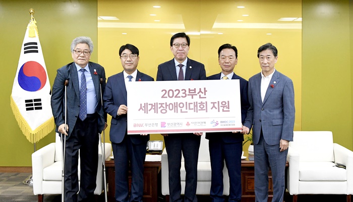 [½Ã»çÄÚ¸®¾ÆÀú³Î=±èÈñ¿µ ±âÀÚ] BNKºÎ»êÀºÇà(ÀºÇàÀå ¹æ¼ººó)Àº 11ÀÏ ¿ÀÀü ºÎ»ê½Ãû¿¡¼ ¿À´Â 8¿ù ºÎ»ê½Ã¿¡¼ ¿¸®´Â ‘2023ºÎ»ê¼¼°èÀå¾ÖÀδëȸ Áö¿ø Àü´Þ½Ä’À» °®°í ‘2023ºÎ»ê¼¼°èÀå¾ÖÀδëȸ Á¶Á÷À§¿øÈ¸’¿¡ ÈÄ¿ø±Ý 1¾ï¿øÀ» Àü´ÞÇß´Ù°í ¹àÇû´Ù.