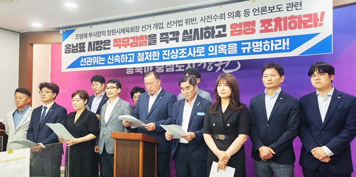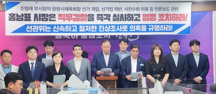 ¹®¼ø±Ô ºÎÀÇÀåÀ» ºñ·ÔÇÑ ¹ÎÁÖ´ç ÀÇ¿ø´ÜÀº 12ÀÏ ¿ÀÈÄ Ã¢¿ø½Ãû ÇÁ·¹½º¼¾ÅÍ¿¡¼ ±âÀÚȸ°ßÀ» ¿¾î "È«³²Ç¥ ½ÃÀåÀº Á¶¸í·¡ ºÎ½ÃÀå Á÷¹«°¨ÂûÀ» Áï°¢ ½Ç½ÃÇØ ¾öÁ¤ Á¶Ä¡Çϰí, ¼±°üÀ§´Â ½Å¼ÓÇϰí öÀúÇÑ Áø»óÁ¶»ç·Î ÀÇȤÀ» ¸í¹éÈ÷ ±Ô¸íÇ϶ó"°í Ã˱¸Çß´Ù.