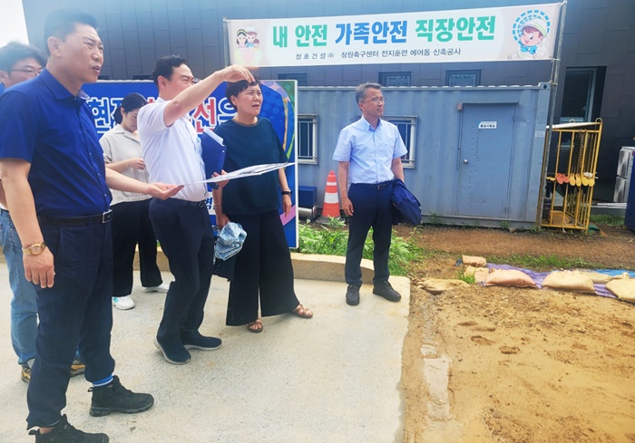 À̳¯ ÇöÀå¿¡¼´Â °ø»ç ÁøÇà »óȲÀ» º¸°í¹ÞÀº µÚ ÁýÁßÈ£¿ì ´ëºñż¼¸¦ Á¡°ËÇß´Ù.