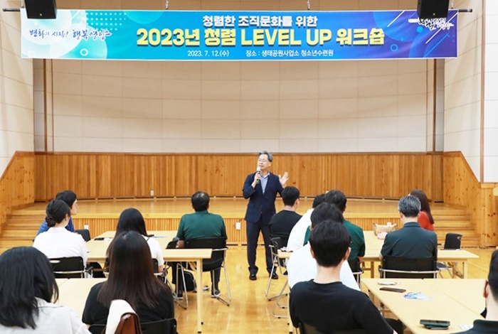 [½Ã»çÄÚ¸®¾ÆÀú³Î=±è¿¬ÇÐ ±âÀÚ] ¿µ¾ç±º(±º¼ö ¿ÀµµÃ¢)Àº Áö³ 12ÀÏ ±¹¹Î±ÇÀÍÀ§¿øÈ¸¿¡¼ ÁÖ°üÇÏ´Â ‘2023³âµµ °ø°ø±â°ü Á¾ÇÕû·Åµµ Æò°¡’¿¡ ´ëºñÇØ °øÁ÷»çȸÀÇ Ã»·Å¹®È È®»ê ¹× °ø°¨·¼ÒÅë ±â¹ÝÀÇ Á¶Á÷¹®È °³¼±À» À§ÇØ 7~9±Þ Á÷¿øµé(47¸í)À» ´ë»óÀ¸·Î '2023³â û·Å LEVEL UP ¿öÅ©¼ó'À» °³ÃÖÇß´Ù.