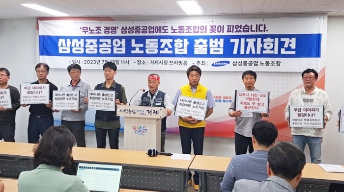 »ï¼ºÁß°ø¾÷³ëÁ¶´Â À̳¯ °ÅÁ¦½Ãû ºê¸®Çη뿡¼ ³ëÁ¶ Ãâ¹ü ±âÀÚȸ°ßÀ» ¿°í "´õ ÀÌ»ó ±Ù·ÎÀÚ°¡ ¾Æ´Ñ ´ç´çÇÑ ³ëµ¿ÀÚÀÓÀ» ¼±Æ÷ÇÏ¸ç ¸ðµç ³ëµ¿ÀÚ°¡ ³ëÁ¶ Ȱµ¿À» ÇÒ ±Ç¸®¸¦ ²ÉÇÇ¿ì°Ú´Ù"°í ¸»Çß´Ù.