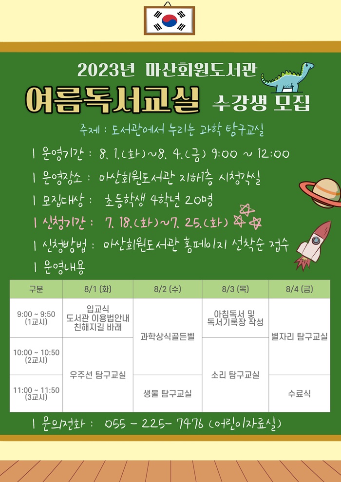 [½Ã»çÄÚ¸®¾ÆÀú³Î=Á¤Á¾¹Î ¼±ÀÓ±âÀÚ] ¸¶»êȸ¿øµµ¼°ü°ú(°úÀå ±è¸í±Ô)´Â ¿©¸§¹æÇÐÀ» ¸Â¾Æ °ü³» ÃʵîÇб³ 4Çгâ»ý 20¸íÀ» ´ë»óÀ¸·Î ¿À´Â 8¿ù 1ÀϺÎÅÍ 4ÀϱîÁö 4Àϰ£ ‘¿©¸§ µ¶¼±³½Ç’À» ¿î¿µÇÑ´Ù°í ¹àÇû´Ù.
