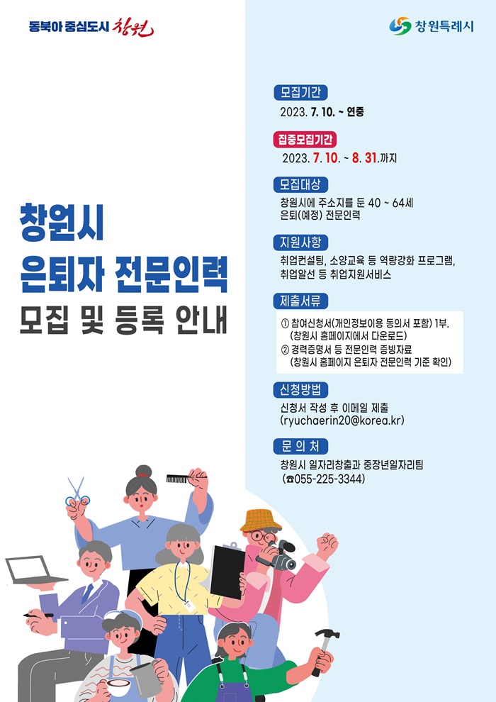 [½Ã»çÄÚ¸®¾ÆÀú³Î=Á¤Á¾¹Î ¼±ÀÓ±âÀÚ] â¿øÆ¯·Ê½Ã(½ÃÀå È«³²Ç¥)´Â Áö³ 10ÀϺÎÅÍ Àü¹®Áö½Ä°ú °æÇèÀ» °®Ãá 40¼¼ ÀÌ»ó 64¼¼ ¹Ì¸¸ ÁßÀå³â ÀºÅðÀÚ¸¦ ´ë»óÀ¸·Î À繫, Àλç, »ý»ê°ü¸® µî ´Ù¾çÇÑ ºÐ¾ßÀÇ ÀºÅðÀÚ Àü¹®ÀηÂÀ» ¿¬Áß ¸ðÁýÇØ ‘Àü¹®ÀηÂÇ®’À» ±¸¼ºÇÑ´Ù°í 17ÀÏ ¹àÇû´Ù.