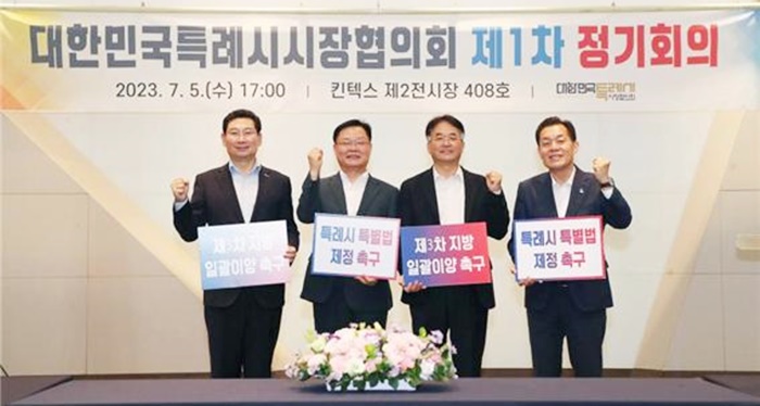 | Áö³ 7¿ù 5ÀÏ ¿¸° ´ëÇѹα¹Æ¯·Ê½Ã½ÃÀåÇùÀÇȸ Á¦1Â÷ Á¤±âȸÀÇ¿¡¼ Ư·Ê½Ã Ưº°¹ý Á¦Á¤ µîÀ» ¿ä±¸Çϰí ÀÖ´Ù. ¿ÞÂÊ µÎ¹øÂ° È«³²Ç¥ â¿øÆ¯·Ê½ÃÀå. |