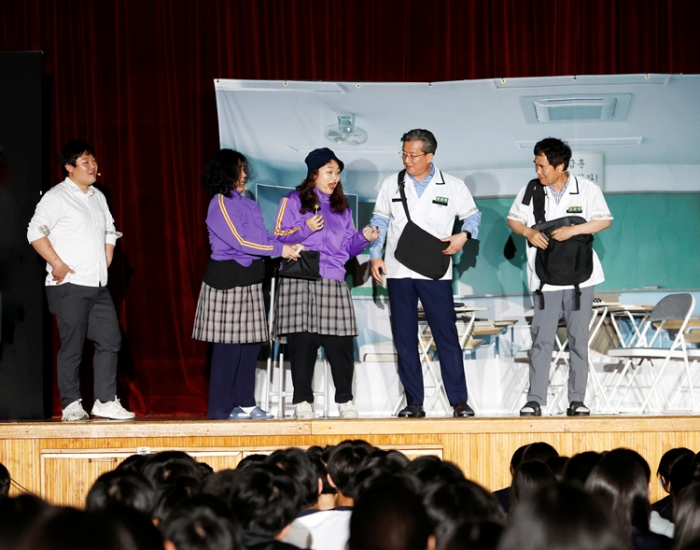 ƯÈ÷, Á¤¿ë·¡ À¯¼º±¸Ã»Àå°ú ¿Àâ¼® ´ë´öÁßÇб³ÀåÀº Ä«¸Þ¿À·Î ±ô¦ µîÀåÇÏ¿© 1ºÎ¿Í 2ºÎ »çÀ̸¦ ¿¬°áÇßÀ¸¸ç, ÇлýµéÀÇ ²Þ°ú Èñ¸ÁÀ» ÀÀ¿øÇÏ´Â ¸Þ½ÃÁö¸¦ Àü´ÞÇÏ¿© ´«±æÀ» ²ø¾ú´Ù.