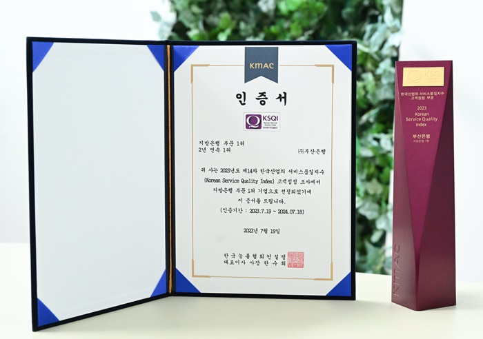 [½Ã»çÄÚ¸®¾ÆÀú³Î=±èÈñ¿µ ±âÀÚ] BNKºÎ»êÀºÇàÀº 19ÀÏ Çѱ¹´É·üÇùȸÄÁ¼³ÆÃ(KMAC)ÀÌ ¹ßÇ¥ÇÑ ‘2023³âµµ Çѱ¹»ê¾÷ÀÇ ¼ºñ½ºÇ°ÁúÁö¼ö(KSQI:Korean Service Quality Index) °í°´Á¢Á¡ ºÎ¹®’ Áö¹æÀºÇà »ê¾÷ ºÎ¹®¿¡¼ 2³â ¿¬¼Ó ¼ºñ½º ǰÁú 1À§ ±â¾÷À¸·Î ¼±Á¤µÆ´Ù.
