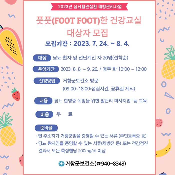 À̹ø °Ç°±³½ÇÀº ´ç´¢º´ 3´ë ÇÕº´ÁõÀ¸·Î ºÒ¸®´Â ‘´ç´¢º´¼º Á·ºÎº´º¯’ ¿¹¹æÀ» À§ÇØ ¿î¿µÇϸç, ÀÚ°¡°Ç°°ü¸® ½À°ü Çü¼ºÀ» À§ÇÑ Ç÷´ç°ü¸® Á߿伺, ¹ß °ü¸®·¸¶»çÁö¹ý ±³À°, ¸»ÃÊÇ÷°üÁúȯ ¿¹¹æÀ» À§ÇÑ Ç÷¾×¼øÈ¯ ¿îµ¿¹æ¹ý ½Àµæ µî ÃÑ 7ȸÂ÷·Î ±¸¼ºµÅ ÀÖ´Ù.