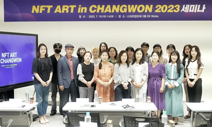 À̳¯ ¼¼¹Ì³ª¿¡´Â ¸ðÁý °ø°í¸¦ ÅëÇØ ¼±Á¤µÈ °ü³» ¿¹¼úÀÎ 20¸íÀÌ Âü¼®ÇØ NFT ÀÛǰ Á¦ÀÛ °úÁ¤°ú Àü¹ÝÀûÀÎ »ç¾÷ ÁøÇà ÀýÂ÷¿¡ ´ëÇÑ ¼³¸íÀ» µé¾ú´Ù.