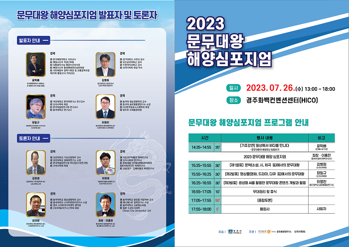 °æ»óºÏµµ¿Í °æÁֽð¡ ÁÖÃÖÇϰí ȯµ¿ÇØ»ê¾÷¿¬±¸¿ø°ú µ¿±¹´ë WISEÄ·ÆÛ½º ±Û·Î¹úÀ¶ÇÕ¿¬±¸¼Ò°¡ ÁÖ°üÇÏ´Â À̹ø Çà»ç´Â ¹®¹«´ë¿ÕÀÇ ÇØ¾çºñÀü°ú °æÁÖ¹Ù´ÙÀÇ °¡Ä¡¸¦ ±Û·Î¹ú Æ®·»µå¿Í ¹Ì·¡ÁöÇâÀû °üÁ¡À¸·Î ÀçÇØ¼®ÇÏ°í ¹®ÈÄÜÅÙÃ÷·Î °³¹ßÇϱâ À§ÇÑ ÇмúÀû ¿¬±¸¼º°ú ÃàÀû ¹× Åä·ÐÀÇ ÀåÀ» À§ÇØ ¸¶·ÃµÆ´Ù.
