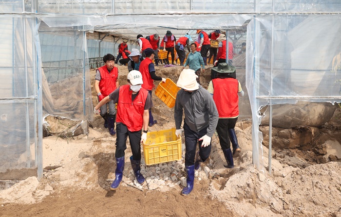 [½Ã»çÄÚ¸®¾ÆÀú³Î=±è¿¬ÇÐ ±âÀÚ] °æ»óºÏµµÀÇȸ(ÀÇÀå ¹èÇÑö)´Â 25ÀÏ ³ó¼ö»êÀ§¿øÈ¸ ¹× °Ç¼³¼Ò¹æÀ§¿øÈ¸ À§¿ø µî µµÀÇȸ ÀÇ¿øÀ» ºñ·ÔÇÑ »ç¹«Ã³ Á÷¿ø 50¿©¸íÀÌ Âü¿©ÇÑ °¡¿îµ¥ °æºÏ ºÏºÎÁö¿ª ÁýÁßÈ£¿ì·Î ÀÎÇØ Å« ÇÇÇØ¸¦ ÀÔÀº ºÀȱº Ãá¾ç¸é Áö¿ªÀÇ ÇϿ콺 ÇÇÇØ ÇöÀåÀÇ º¹±¸ÀÛ¾÷¿¡ ±¸½½¶¡À» Èê·È´Ù.