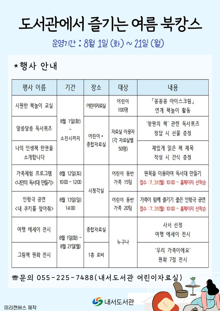 ÁÖ¿ä Çà»ç·Î´Â 8¿ù 12ÀÏ ¿ÀÀü 10½Ã¿¡ ¾î¸°À̸¦ µ¿¹ÝÇÑ 15°¡Á·ÆÀÀ» ´ë»óÀ¸·Î ‘³ª¸¸ÀÇ µ¶¼´ë ¸¸µé±â’¿Í 8¿ù 13ÀÏ ¿ÀÈÄ 2½Ã¿¡ ‘³» Äí۸¦ ã¾ÆÁà’ ÀÎÇü±Ø °ø¿¬ÀÌ ÀÖ´Ù.