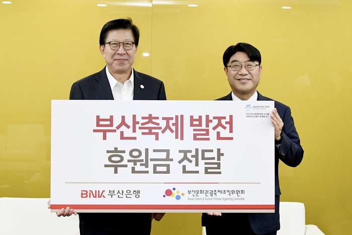 [½Ã»çÄÚ¸®¾ÆÀú³Î=±èÈñ¿µ ±âÀÚ] BNKºÎ»êÀºÇà(ÀºÇàÀå ¹æ¼ººó)Àº 25 ¿ÀÈÄ, ºÎ»ê½Ãû¿¡¼ ‘Á¦18ȸ ºÎ»êºÒ²ÉÃàÁ¦’ µî ºÎ»êÁö¿ª ÃàÁ¦ ¹ßÀüÀ» À§ÇÑ ÈÄ¿ø±Ý 3¾ï7,000¸¸¿øÀ» ºÎ»ê¹®È°ü±¤ÃàÁ¦Á¶Á÷À§¿øÈ¸¿¡ Àü´ÞÇß´Ù°í ¹àÇû´Ù.