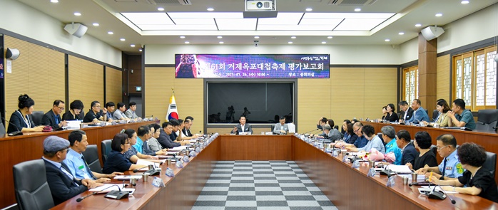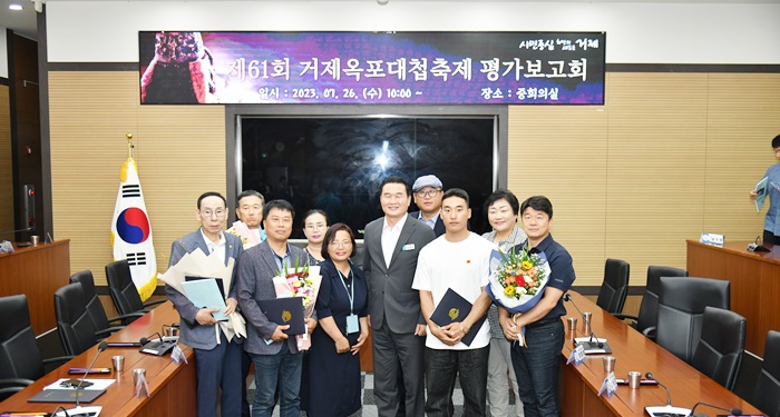 [½Ã»çÄÚ¸®¾ÆÀú³Î=Á¤Á¾¹Î ¼±ÀÓ±âÀÚ] °ÅÁ¦½Ã´Â Áö³ 26ÀÏ °ÅÁ¦½Ãû ÁßȸÀǽǿ¡¼ ÃàÁ¦ Áö¿øºÎ¼ ´ã´çºÎ¼Àå°ú ¹®È¿¹¼ú´Üü, À¯°ü±â°ü ¹× ºÀ»ç´Üü ±×¸®°í ÃàÁ¦ À¯°øÀÚ Ç¥Ã¢ÀÚ µî 40¿©¸íÀÌ Âü¼®ÇÑ °¡¿îµ¥ Á¦61ȸ °ÅÁ¦ ¿ÁÆ÷´ëø ÃàÁ¦ Æò°¡º¸°íȸ¸¦ °³ÃÖÇß´Ù.