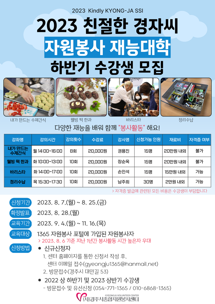 [½Ã»çÄÚ¸®¾ÆÀú³Î=°æºÏÃëÀ纻ºÎ] (»ç)°æÁÖ½ÃÁ¾ÇÕÀÚ¿øºÀ»ç¼¾ÅÍ(ÀÌ»çÀå Á¤ÀçÀ±)´Â ¿À´Â 7ÀϺÎÅÍ 25ÀϱîÁö 3ÁÖ °£ ‘2023 ÇϹݱâ Ä£ÀýÇÑ °æÀÚ¾¾ ÀÚ¿øºÀ»ç Àç´É´ëÇÐ’(ÀÌÇÏ Àç´É´ëÇÐ) ¼ö°»ýÀ» ¸ðÁýÇÑ´Ù°í ¹àÇû´Ù.