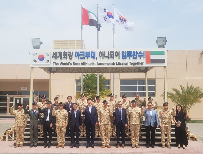 ÀÌ¿¡ ¾Õ¼ ±¹È¸ ´ëÇ¥´ÜÀº ù ¹æ¹®±¹ÀÎ UAE¿¡¼ÀÇ Ã¹ ÀÏÁ¤À¸·Î ¾ÆÅ©ºÎ´ë(UAE ±º»çÈÆ·ÃÇù·Â´Ü)À» ¹æ¹®, À庴µéÀ» °Ý·ÁÇÏ°í ½Ä»ç¸¦ ÇÔ²² Çß´Ù.