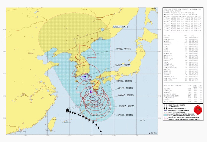 ¹Ì±¹ ÇÕµ¿ÅÂdz°æº¸¼¾ÅÍ(JTWC), Áß±¹ Áß¾Ó±â»ó´ë, ´ë¸¸ ±³ÅëºÎ Áß¾Ó±â»ó±¹ µî ÁÖº¯±¹ ±â»ó´ç±¹µµ °æ³²³²ÇØ¾È »ó·ú ÈÄ Çѹݵµ °üÅëÀ» ¿¹»óÇÑ´Ù.