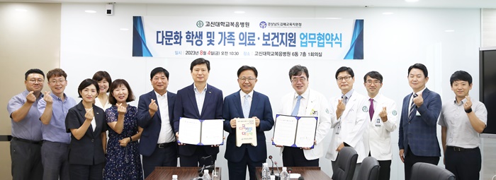 [½Ã»çÄÚ¸®¾ÆÀú³Î=Á¤Á¾¹Î ¼±ÀÓ±âÀÚ] °í½Å´ëÇб³º¹À½º´¿ø(º´¿øÀå ¿À°æ½Â)ÀÌ °æ³² ±èÇØ±³À°Áö¿øÃ»(±³À°Àå ¾ÈÅÂȯ)°ú ´Ù¹®È Çлý ¹× °¡Á· ÀǷẸ°ÇÁö¿ø ¾÷¹«Çù¾àÀ» ü°áÇß´Ù.