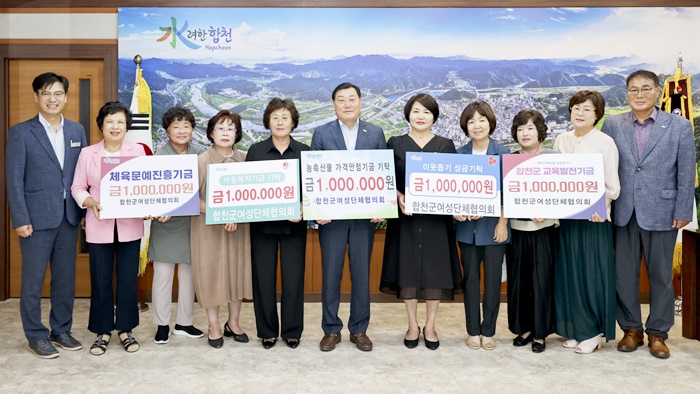 [½Ã»çÄÚ¸®¾ÆÀú³Î=Á¤Á¾¹Î ¼±ÀÓ±âÀÚ] ÇÕõ±º ÇÕõ±º¿©¼º´ÜüÇùÀÇȸ(ȸÀå ÀÌÁ¤ÀÓ)´Â 8ÀÏ ÇÕõ±ºÃ»À» ¹æ¹®ÇØ ÀÌ¿ôµ½±â¼º±ÝÀ» ºñ·ÔÇØ ¾Æµ¿º¹Áö±â±Ý, ±³À°¹ßÀü±â±Ý, üÀ°¹®¿¹ÁøÈï±â±Ý, ³óÃà»ê¹° °¡°Ý¾ÈÁ¤±â±Ý)¿¡ °¢ 1¹é¸¸¿ø¾¿ ÃÑ 5¹é¸¸¿øÀ» ±âŹÇß´Ù.