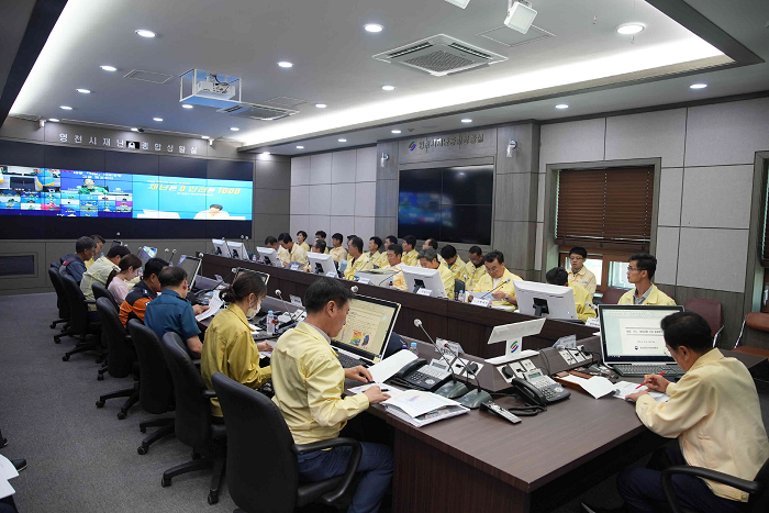 ¿µÃµ½Ã´Â ‘Á¦6È£ ÅÂdz Ä«´«’ ºÏ»ó¿¡ µû¶ó 8ÀÏ ½Ãû Àç³¾ÈÀü»óȲ½Ç¿¡¼ ¿µÃµ½Ã Àç³¾ÈÀü´ëÃ¥º»ºÎÀå(Ãֱ⹮ ¿µÃµ½ÃÀå) ¹× 21°³ Çù¾÷ ºÎ¼Àå ¹× °æÂû¼, ¼Ò¹æ¼ µî À¯°ü±â°üÀÌ Âü¼®ÇÑ °¡¿îµ¥ ´ëåȸÀǸ¦ °³ÃÖÇß´Ù.