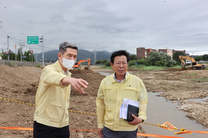 ÇöÀç ³Ãõ°ú Ä¥¼ºÃµ °ø»ç´Â ¹°È帧ÀÌ ¿øÈ°Çϵµ·Ï ÇÏõ¿¡¼ Èë¸ð·¡¸¦ Áؼ³ÇØ ¹ÝÃâÇÏ´Â µî ¹°±æ È®º¸¸¦ À§ÇÑ ÀÛ¾÷¿¡ ÁýÁßÇϰí ÀÖÀ¸¸ç, ƯÈ÷ ÇÏõ ÆøÀÌ ³ÐÀº Áö¿ªº¸´Ù ÆøÀÌ Á¼°í À¯¼ÓÀÌ ºü¸¥ °÷À» ¿ì¼± Á¤ºñÇϰí ÀÖ´Ù.