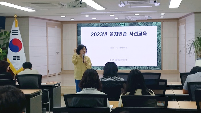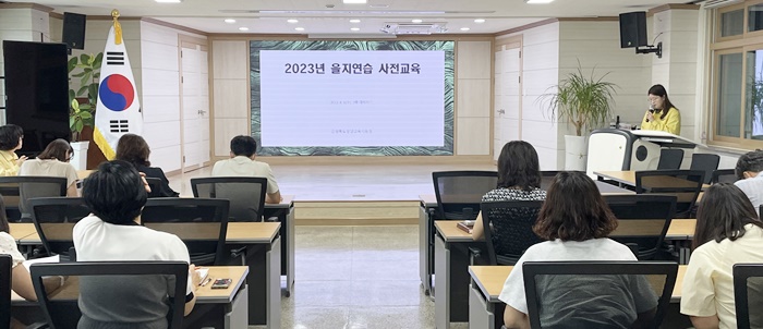 [½Ã»çÄÚ¸®¾ÆÀú³Î=±è¿¬ÇÐ ±âÀÚ] ¿µ¾ç±³À°Áö¿øÃ»Àº 9ÀÏ 3Ãþ ´ëȸÀǽǿ¡¼ À»Áö¿¬½À Âü°¡ °ø¹«¿ø ´ë»óÀ¸·Î‘2023³â À»Áö¿¬½À »çÀü±³À°’À» ½Ç½ÃÇß´Ù.