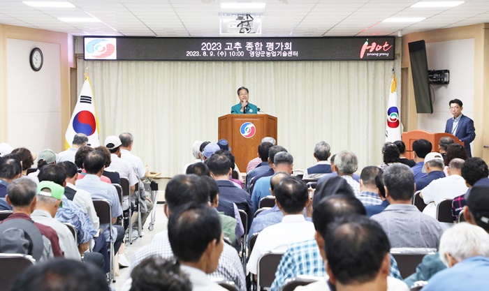 [½Ã»çÄÚ¸®¾ÆÀú³Î=±è¿¬ÇÐ ±âÀÚ] ¿µ¾ç±º(±º¼ö ¿ÀµµÃ¢)Àº 9ÀÏ ¿µ¾ç±º³ó¾÷±â¼ú¼¾ÅÍ ¹× ¿µ¾ç°íÃß¿¬±¸¼Ò¿¡¼ °íÃß Àç¹è ³ó¾÷ÀÎ 200¿©¸íÀÌ Âü¼®ÇÑ °¡¿îµ¥ 2023³âµµ ¿µ¾ç°íÃß Á¾ÇÕ Æò°¡È¸¸¦ °³ÃÖÇß´Ù.