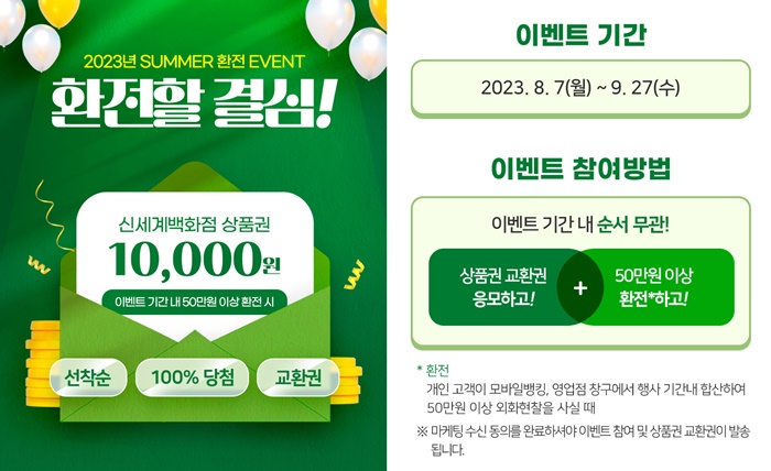 BNK°æ³²ÀºÇàÀº ¿À´Â 9¿ù 27ÀϱîÁö ‘2023³â SUMMER ȯÀü À̺¥Æ® ¡¸È¯ÀüÇÒ °á½É!!¡¹’À» ÁøÇàÇϰí ÀÖ´Ù.