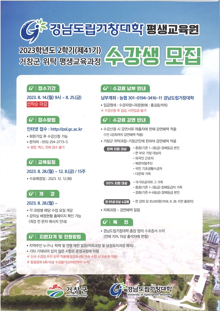 [½Ã»çÄÚ¸®¾ÆÀú³Î=Á¤Á¾¹Î ¼±ÀÓ±âÀÚ] °ÅⱺÀº °æ³²µµ¸³°Åâ´ëÇÐ À§Å¹ 2023³âµµ Æò»ý±³À°°úÁ¤ 2Çб⠼ö°»ýÀ» °Åâ´ëÇÐ Æò»ý±³À°¿ø ¹× ±¹Á¦Çù·Â¿ø ȨÆäÀÌÁö¸¦ ÅëÇØ 8¿ù 14ÀÏ ¿ÀÀü 9½ÃºÎÅÍ ¼±Âø¼ø ¸ðÁýÇÑ´Ù.