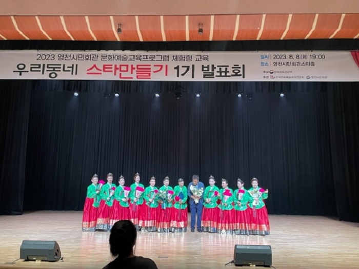 [½Ã»çÄÚ¸®¾ÆÀú³Î=°æºÏÃëÀ纻ºÎ] ¿µÃµ½Ã(½ÃÀå Ãֱ⹮)´Â ¹®ÈüÀ°°ü±¤ºÎ°¡ ÁÖÃÖÇϰí Çѱ¹¹®È¿¹¼úȸ°ü¿¬ÇÕȸ, ¿µÃµ½Ã¹Îȸ°üÀÌ ÁÖ°üÇÏ´Â ¡¸¹®È¿¹¼ú±³À° ÇÁ·Î±×·¥ Áö¿ø»ç¾÷¡¹ÀÇ ÀÏȯÀÎ <¿ì¸®µ¿³× ½ºÅ¸ ¸¸µé±â> 1±â¼öÀÇ 15ÁÖ ±³À°°úÁ¤ ¼ö·á ¹× ¼º°ú ¹ßǥȸ¸¦ Áö³ 9ÀÏ ¼º°øÀûÀ¸·Î °³ÃÖÇß´Ù°í ¹àÇû´Ù.