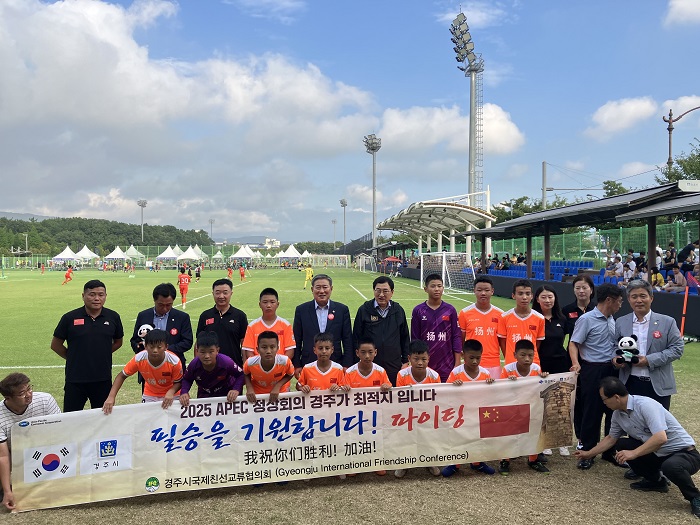 [½Ã»çÄÚ¸®¾ÆÀú³Î=°æºÏÃëÀ纻ºÎ] ÁÖ³«¿µ °æÁÖ½ÃÀåÀÌ 14ÀÏ ¿ÀÈÄ ‘°æÁÖȶûFC’¿Í ÇØ¿Ü ÀڸſìÈ£µµ½Ã ÃÊûÆÀÀÎ Áß±¹ ‘¾çÀú¿ì½Ã’ Ã౸ÆÀ°ú ÀϺ» ‘³ª¶ó½Ã’ Ã౸ÆÀ °æ±â°¡ ¿¸®°í ÀÖ´Â ±¸ÀåÀ» Â÷·Ê·Î ¹æ¹®ÇØ ÃâÀü ¼±¼öµéÀ» °Ý·ÁÇß´Ù.