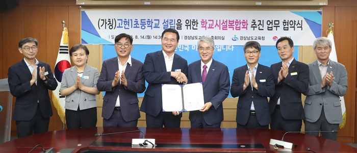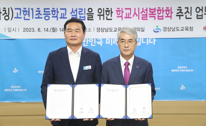 [½Ã»çÄÚ¸®¾ÆÀú³Î=Á¤Á¾¹Î ¼±ÀÓ±âÀÚ] °æ³²µµ±³À°Ã»(±³À°°¨ ¹ÚÁ¾ÈÆ)°ú °ÅÁ¦½Ã(½ÃÀå ¹ÚÁ¾¿ì)´Â 14ÀÏ º»Ã» ÁßȸÀǽǿ¡¼ (°¡Äª)°íÇö1ÃʵîÇб³ ¼³¸³À» À§ÇÑ Çб³½Ã¼³ º¹ÇÕÈ ÃßÁø ¾÷¹« Çù¾à’À» ü°áÇß´Ù.