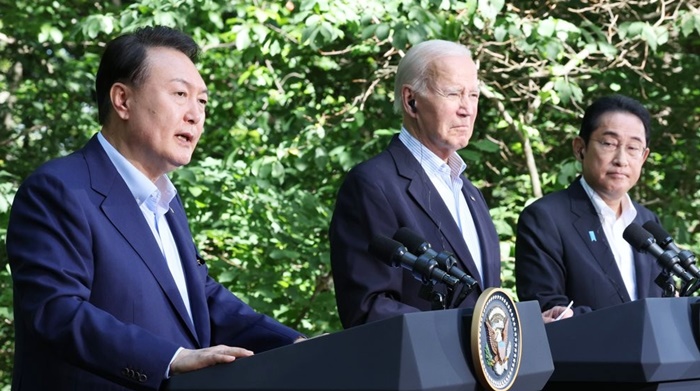 [½Ã»çÄÚ¸®¾ÆÀú³Î=Á¤Á¾¹Î ¼±ÀÓ±âÀÚ] Çѱ¹°ú ¹Ì±¹, ÀϺ» Á¤»óÀÌ 18ÀÏ(ÇöÁö½Ã°£) 3±¹ Çù·ÂÀÇ '»õ·Î¿î ½Ã´ë'(New Era)¸¦ ¼±¾ðÇß´Ù.