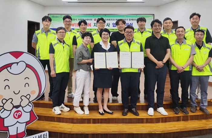 [½Ã»çÄÚ¸®¾ÆÀú³Î=Á¤Á¾¹Î ¼±ÀÓ±âÀÚ] â¿øÆ¯·Ê½Ã(½ÃÀå È«³²Ç¥)´Â 21ÀÏ Ã¢¿ø½Ã ÀÚ¿øºÀ»ç¼¾ÅÍ¿¡¼ ±â¾÷ºÀ»ç´Ü LGÀüÀÚ½º¸¶Æ®ÆÄÅ©1º»ºÎ¹ÝÀåȸ¿Í â¿ø½ÃÀÚ¿øºÀ»ç¼¾ÅͰ¡ Áö¿ª»çȸ ¹ßÀü°ú ÀÚ¿øºÀ»çȰ¼ºÈ¸¦ À§ÇÑ ¾÷¹«Çù¾àÀ» ü°áÇß´Ù°í ¹àÇû´Ù.