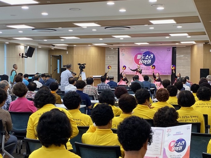 [½Ã»çÄÚ¸®¾ÆÀú³Î=Á¤Á¾¹Î ¼±ÀÓ±âÀÚ] °ÅÁ¦½Ã¹®È¿¹¼úÀç´Ü(ÀÌ»çÀå ¹ÚÁ¾¿ì)°ú Çѱ¹¿¹¼ú¹®È´Üü ÃÑ¿¬ÇÕȸ °ÅÁ¦Áöȸ(´ëÇ¥ ¿ø¼ø·Ã)°¡ °øµ¿ ÁÖ°üÇÑ ‘ÆÄµµ¼Ò¸® À½¾Çȸ’°¡ Áö³ 19ÀÏ µ¿ºÎ¸é °ÅÁ¦Çرݰ³óÇù¿¡¼ Áö¿ª ÁֹεéÀÌ ¸ðÀÎ °¡¿îµ¥ Èï°Ü¿î ºÐÀ§±â·Î Çà»ç¸¦ ¸¶ÃÆ´Ù.