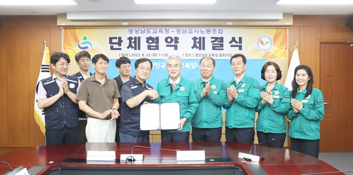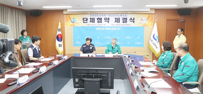 [½Ã»çÄÚ¸®¾ÆÀú³Î=Á¤Á¾¹Î ¼±ÀÓ±âÀÚ] °æ³²µµ±³À°Ã»(±³À°°¨ ¹ÚÁ¾ÈÆ)Àº 22ÀÏ ÁßȸÀǽǿ¡¼ °æ³²±³»ç³ëµ¿Á¶ÇÕ(À§¿øÀå ÀÌÃæ¼ö, ÀÌÇÏ °æ³²±³»ç³ëÁ¶)°ú ´ÜüÇù¾àÀ» ü°áÇß´Ù.